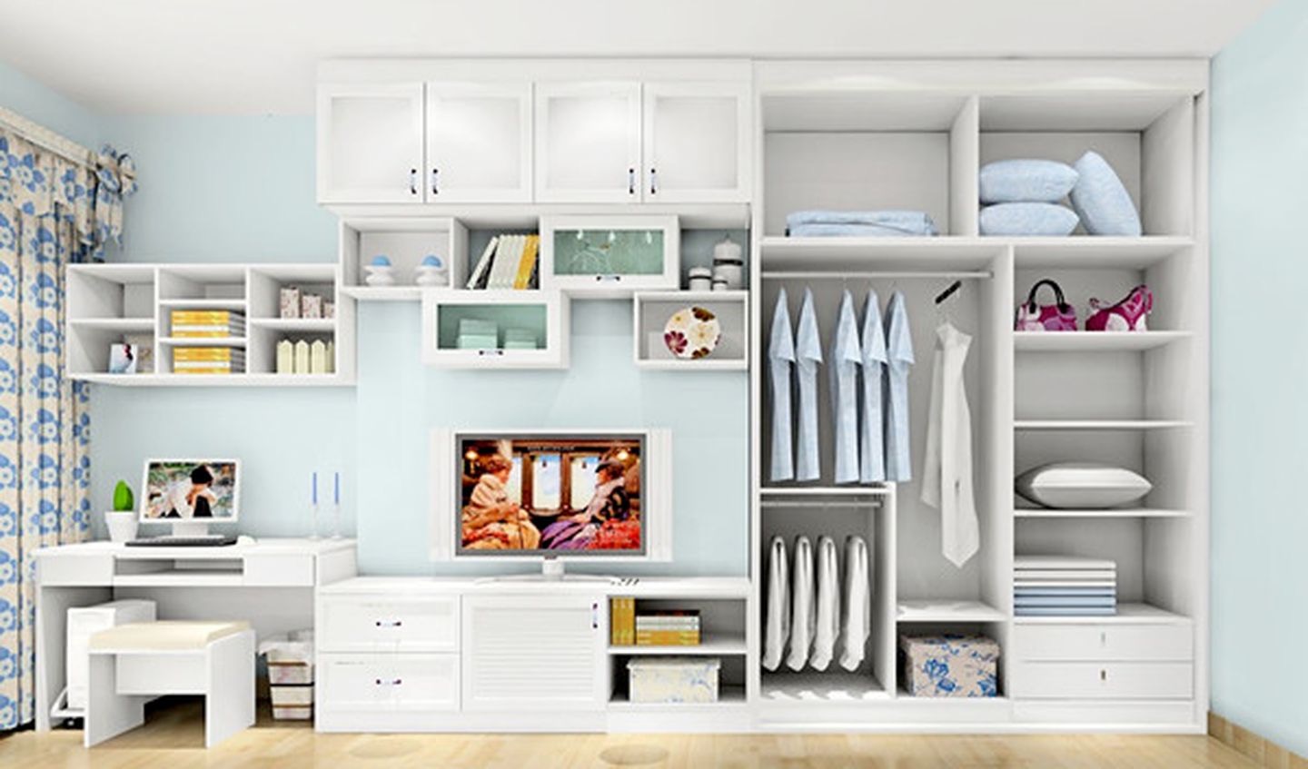 靠墻擺放衣柜的踢腳線位置是需要鋸掉那一部分的,這樣衣柜才能與墻面貼合擺放。